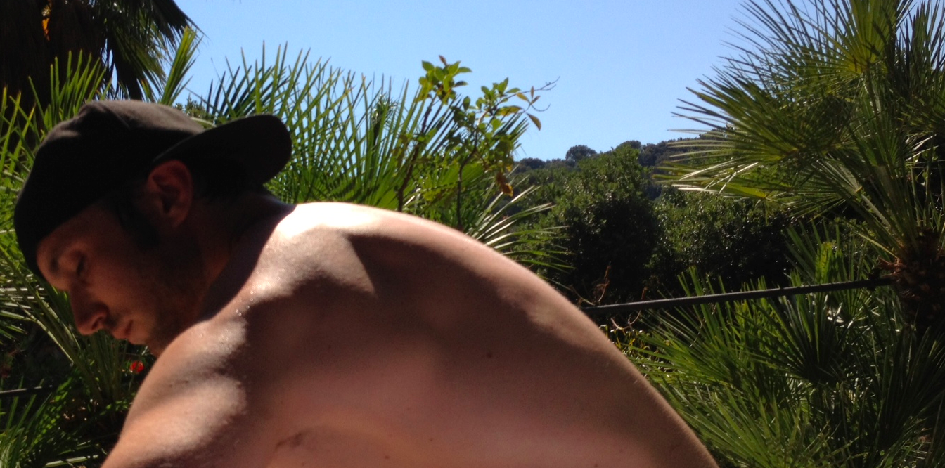 Das Foto zeigt meinen ungeölten Versuch bereits am zweiten Tag soviel Sonne wie möglich zu erhaschen und wurde im Negombo Freiland Spa auf der Insel Ischia aufgenommen. Erste Verbrennungen lassen darauf schließen, dass der Versuch misslang!