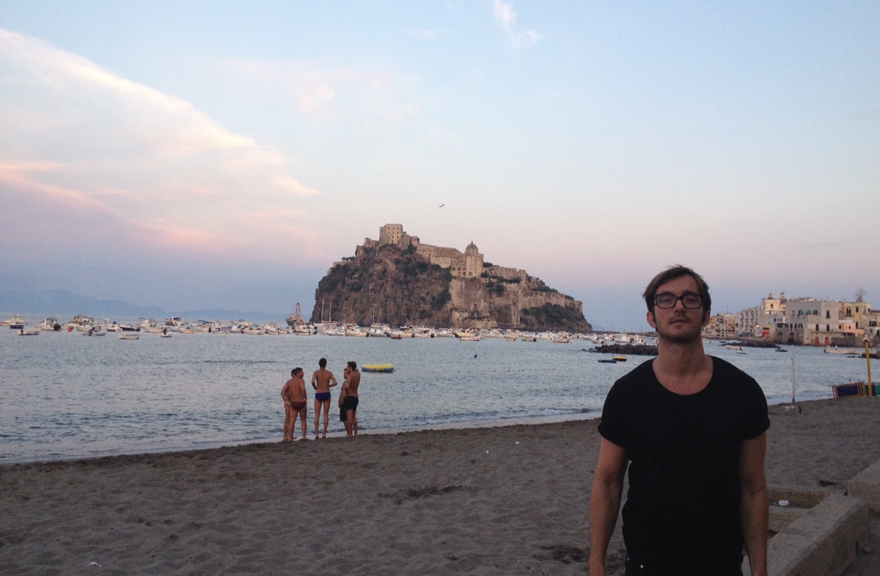 Auf dem Foto fungiere ich als Tourist. Halbwegs (in)stabil posiere ich vor dem Castello Aragonese auf der Insel Ischia. CA ist eine eine Festung, die sich auf einer kleinen Felseninsel befindet. Sie ist durch eine gemauerte, 200 Meter lange Brücke mit dem alten Ort Borgo di Celsa verbunden, der heute mit dem Castello als Ortsteil Ponte der Gemeinde Ischia angehört.