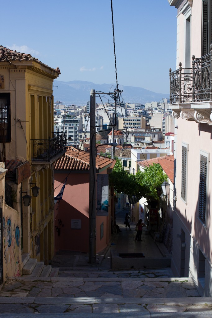 Ein bisschen war es dann doch schade, dass wir die antiken griechischen Tempel nicht mehr besuchen konnten. Doch wir sind auch freilich keine Museumsgänger, die sich davon lange betrüben lassen: bei einem köstlichen Abendessen (Oliven! Mehr Oliven!) ließen wir unsere Gaumen verwöhnen. Dazu ist zu sagen, dass Athen bei weitem nicht so günstig ist wie Berlin, aber noch in einer Liga spielt, die im Vergleich zu anderen europäischen Großstädten durchaus als „angenehm“ zu verbuchen ist. Ein schöner Bonus: die vielen Kioske in der Stadt entsprechen dem Berliner Äquivalent eines Spätis. Bis tief in die Nacht sind sie geöffnet und bieten eine angenehme Alternative zu den teuren Getränken in den Bars. Warum sich nicht in Exarchia auf eine Treppenstufe setzen und die milde Abendtemperatur genießen?