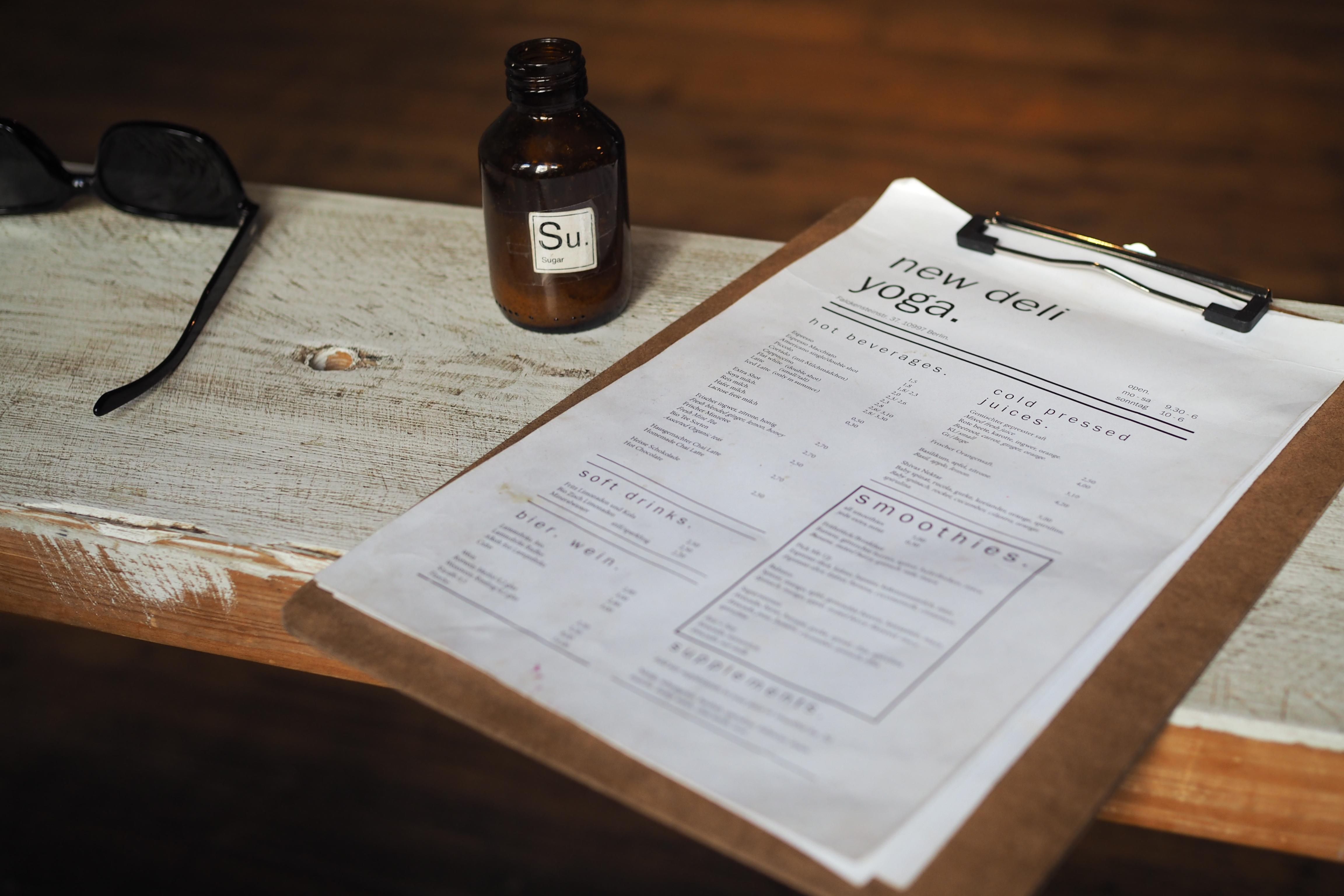 Wer jetzt denkt ich sei dadurch in meiner Auswahl eingeschränkt, der hat sich wohl geschnitten. In Berlin ist es bekanntermaßen ein Leichtes sich healthy-vegan-raw-gluten free und was es nicht sonst noch alles so gibt zu ernähren. Ein Glück habe ich nur einen Katzensprung von meiner Haustür entfernt wohl eine der besten Adressen für günstiges und geiles vegetarisches bzw. veganes Essen: New Deli Yoga. Eine kleine Oase der Ruhe im hektischen Kiezlife. Die Eatery (wieder so ein schönes neumodisches Denglisch-Wort) besteht aus zwei hübsch und eher puristisch eingerichteten Räumen, in denen man es sich zum Kaffeetrinken oder Mittagessen gut gehen lassen kann. Ich liebe es am Wochenende hier zum Brunch vorbeizuschauen oder mir morgens vor der Arbeit einen Saft zu holen. Montag- und Dienstagabend werden die Tische dann hochgeklappt und die Stühle zur Seite geschoben – Zeit für Yogakurse, an denen jeder teilnehmen darf.